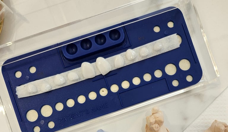 Transform your smile with custom-designed porcelain or composite veneers that correct discoloration, chips, or uneven shapes — giving you perfectly aligned, luminous teeth.